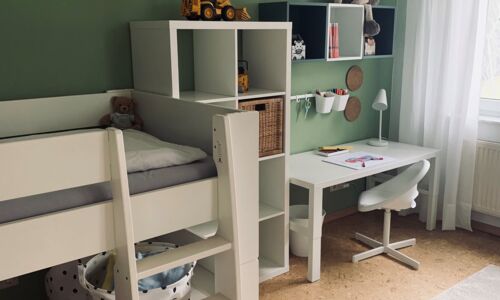 Diesem Kinderzimmer fehlte es an Gemütlichkeit und es sollte ein Platz zum Hausaufgaben machen entstehen.